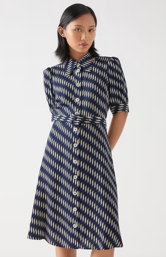 LK Bennett Valerie Navy & Birch Shirt Dress UK 12