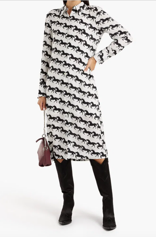 New With Tags Equipment Silk Horse Printed Midi Dress S