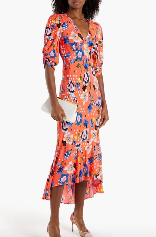 New With Tags Rixo Giselle Floral Papaya Dress L