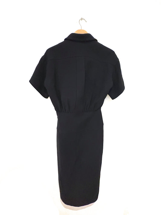 Raey Crepe Black Boxy V-neck Shift Dress UK 6