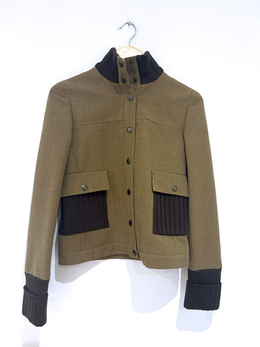 Miu Miu 1999 Vintage Khaki Bomber Jacket and Skirt Set UK 8