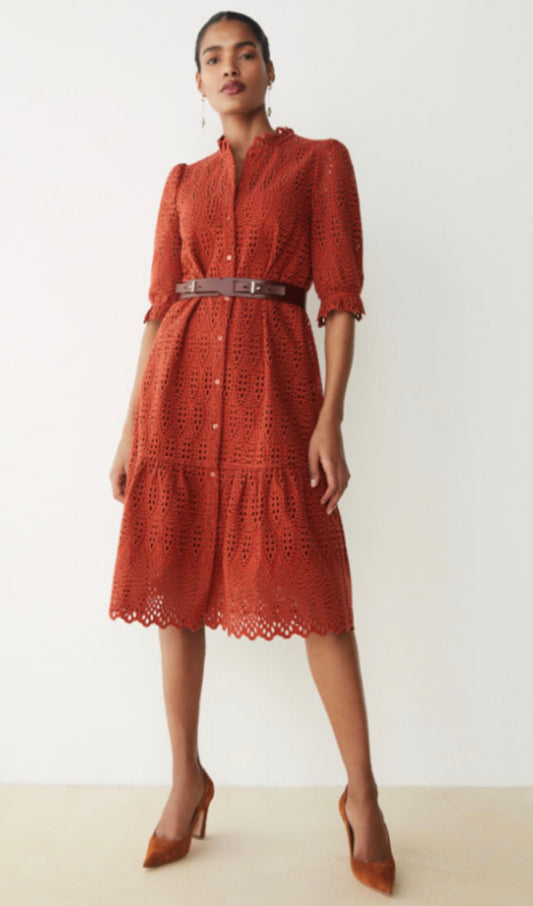 The FoldThe Fold Rust Broderie Anglaise Belted Dress UK 12Regular price £110.00Regular priceUnit price / perSale price £110.00