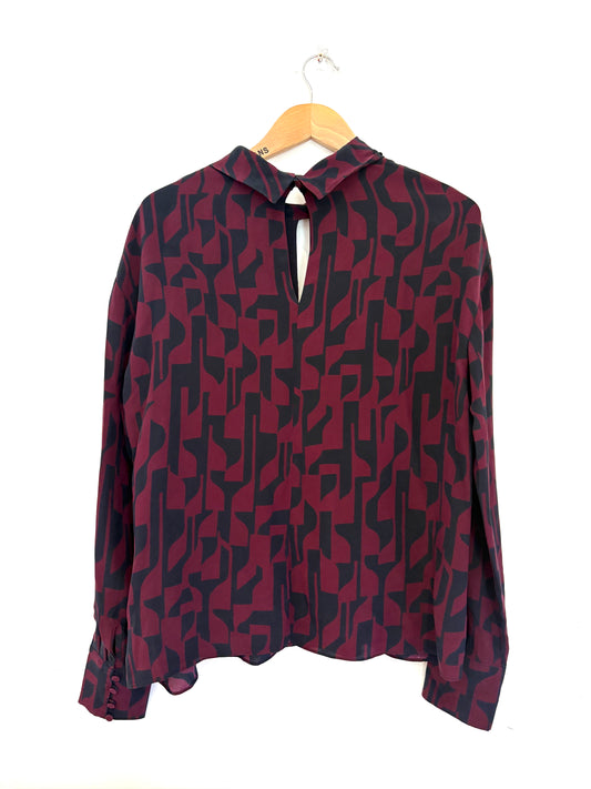 The FoldThe Fold Printed Silk Burgundy and Navy Blouse UK 12Regular price £70.00Regular priceUnit price / perSale price £70.00 -