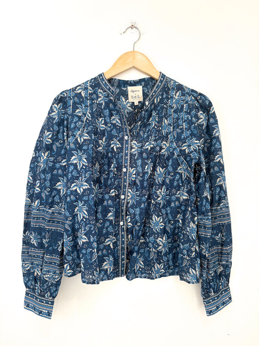 New With Tags Sezane x Sea New York Blue Print Shirt UK 8