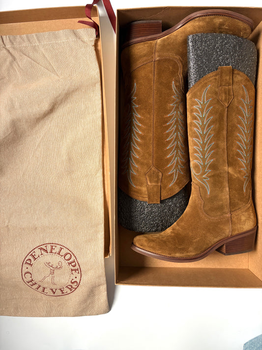 Penelope Chilvers Goldie Embroidered Cowboy Boots UK 7