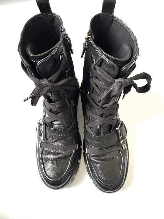 Prada Black Suede Zip Back Peep Toe Heels UK 5.5