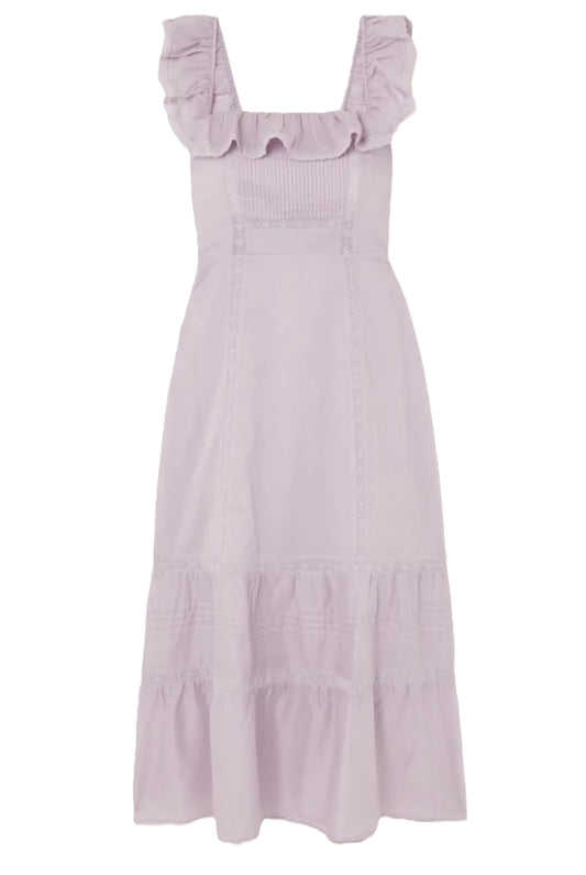 Reformation Tide Lace-Trimmed Ruffled Organic Cotton-Voile Midi Dress UK 10