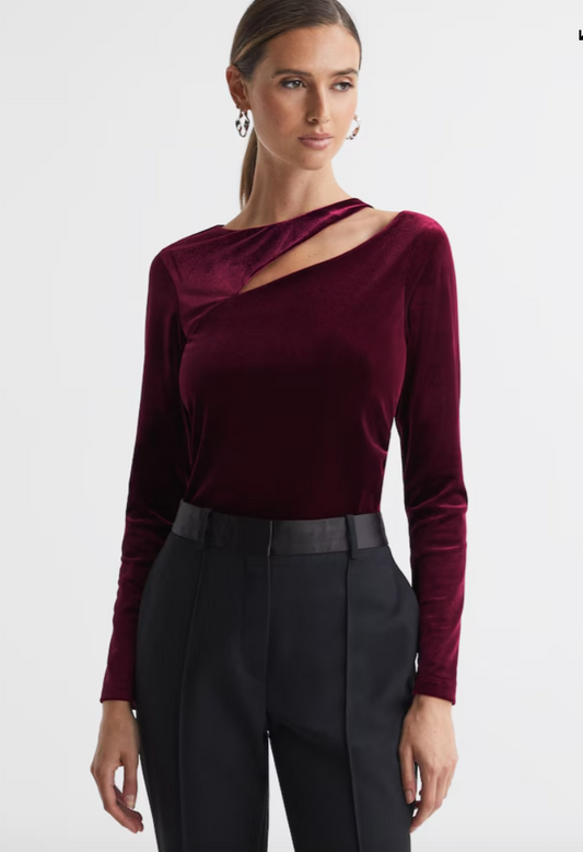 Sold outReiss Berry Velvet Cut-Out Top M