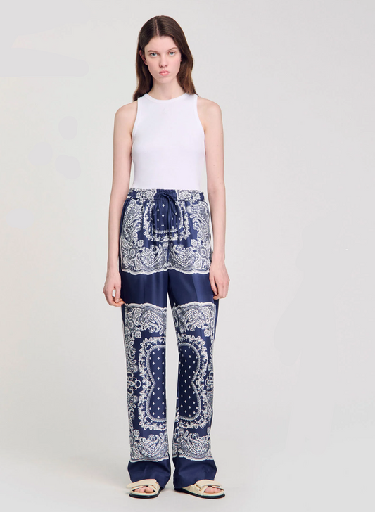 Sandro Bandana Print Floaty Trousers UK 10