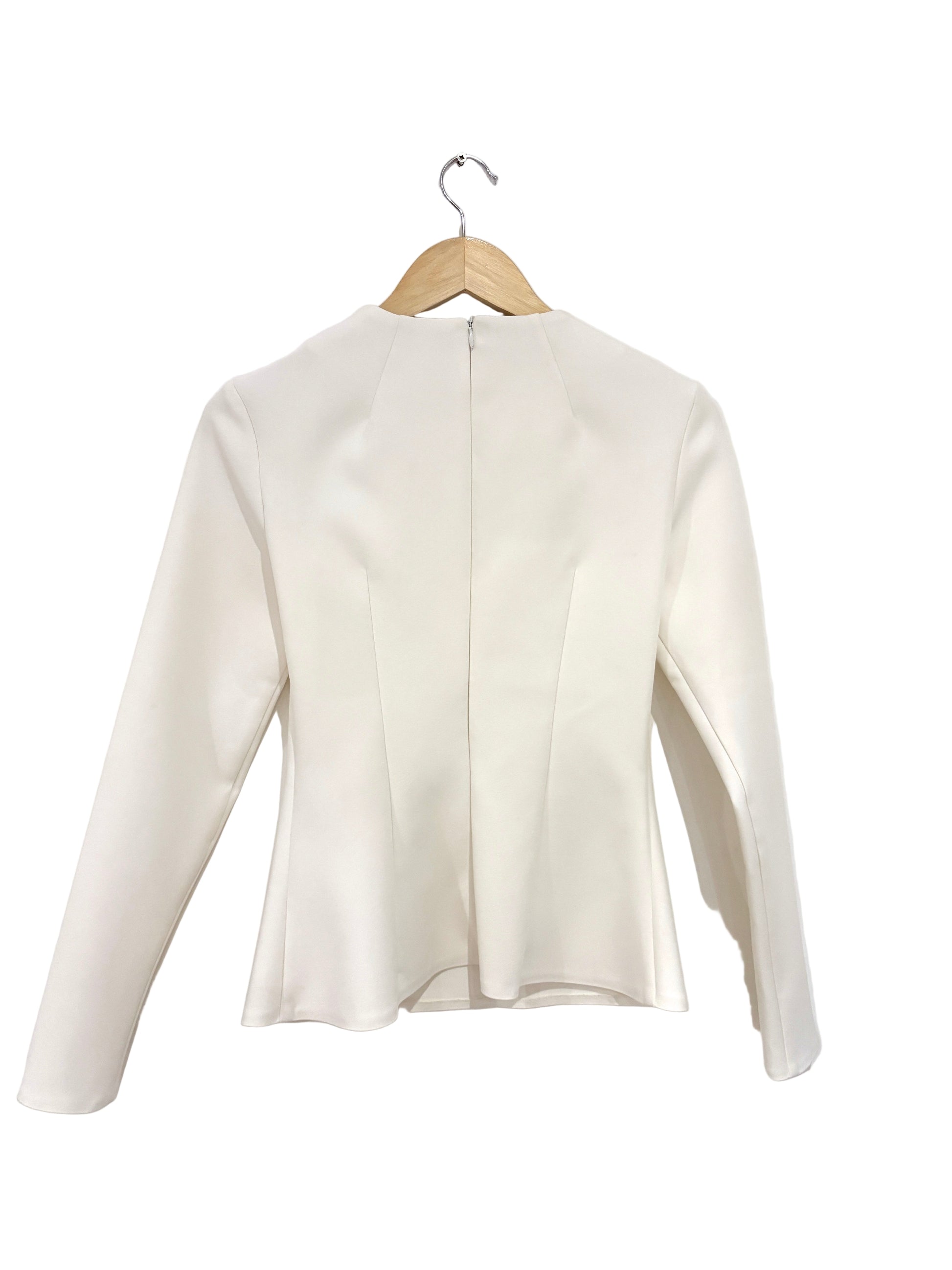 A.W.A.K.E. Mode off white fitted cut out top with long sleeves and zip fastening at the back.