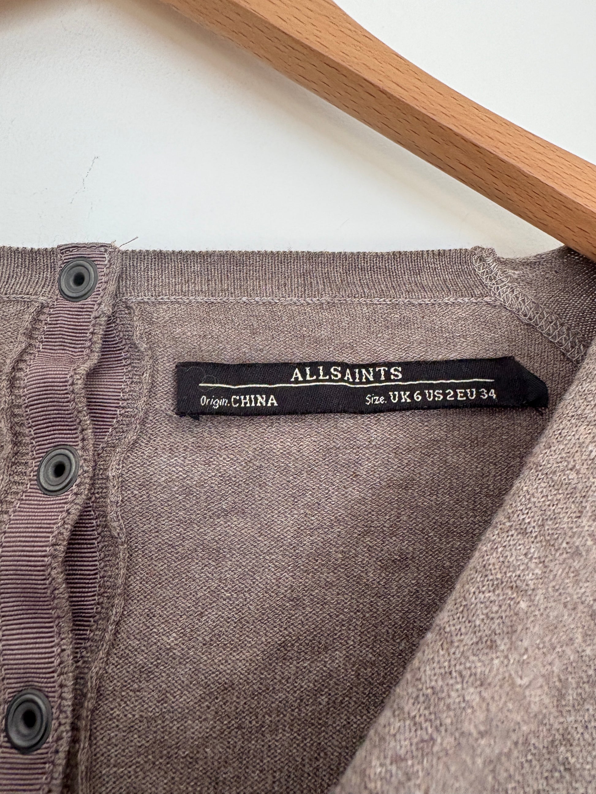 All Saints Button Cowl Neck Top UK 6