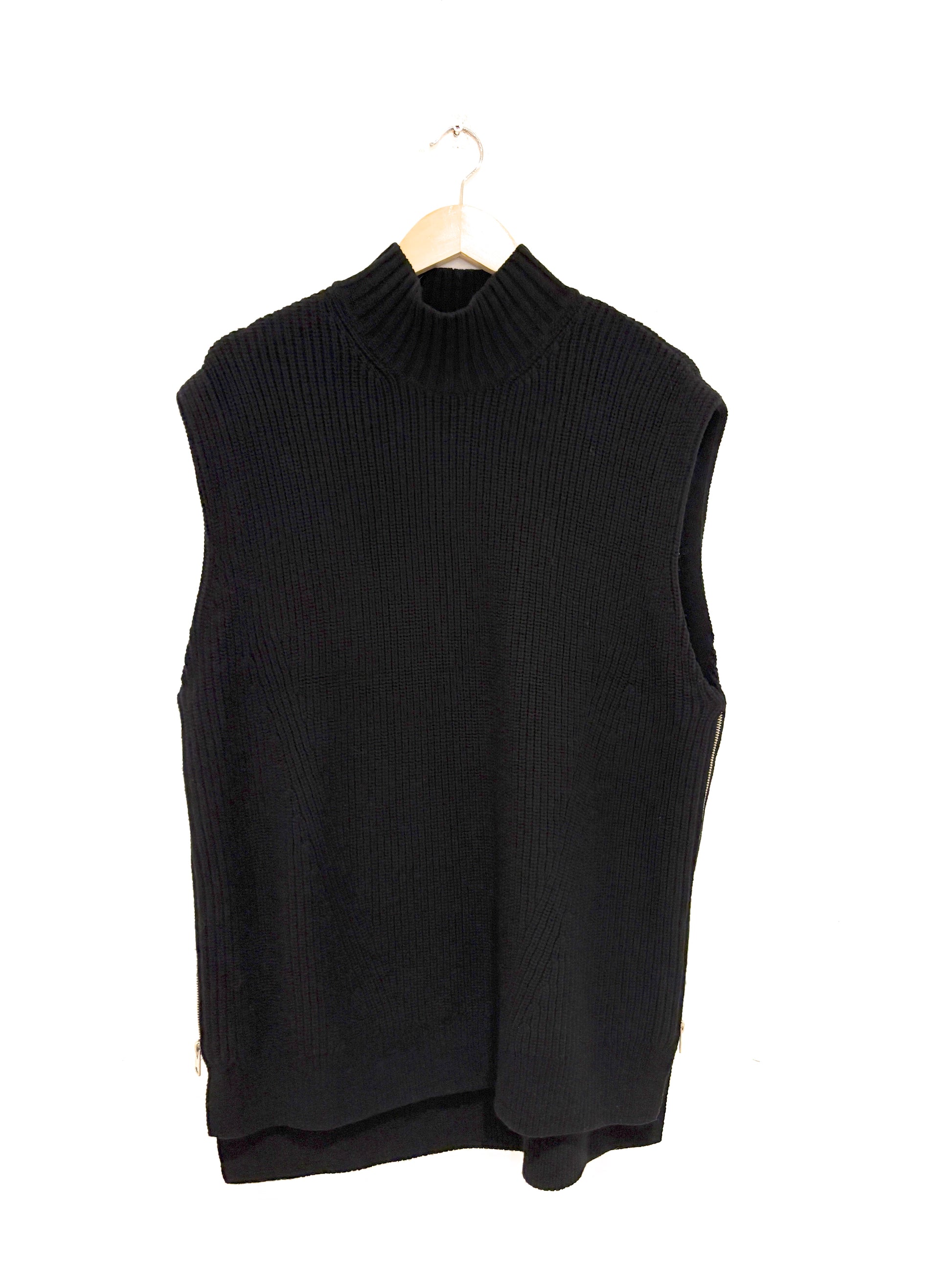 All Saints sleeveless black knit with high neckline and side zip fastening.