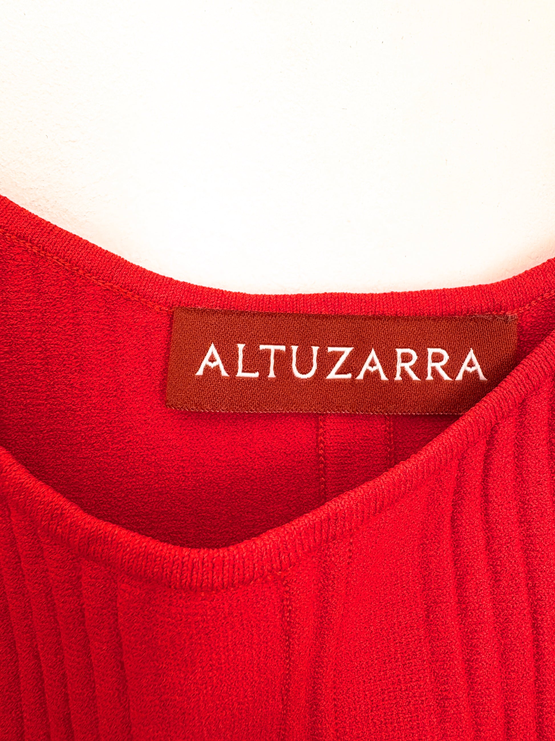 Altuzarra stretchy ribbed red camisole with scoop neckline.