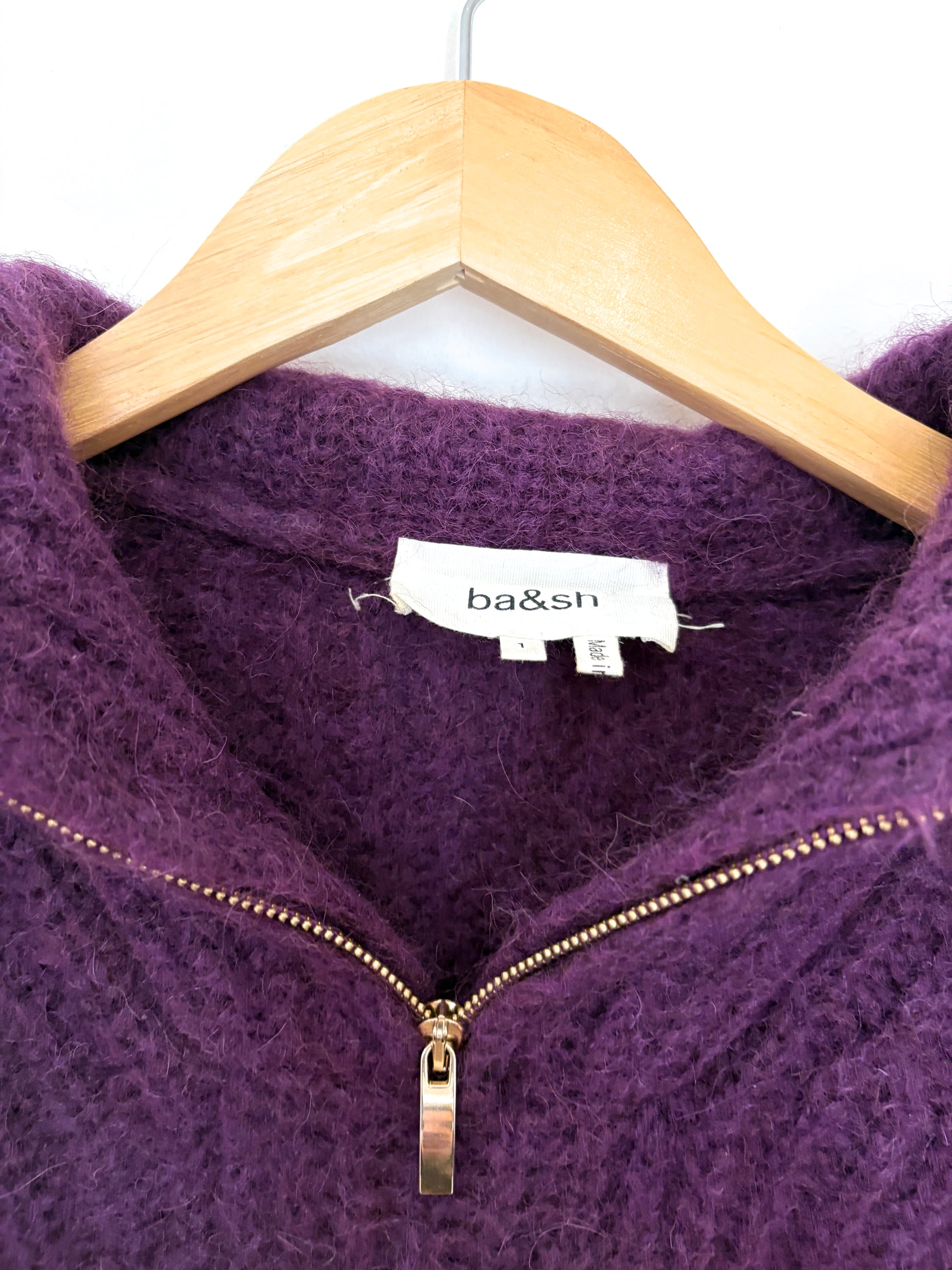 Ba&sh alpaca-blend Jumper in violet with stand-up collar.