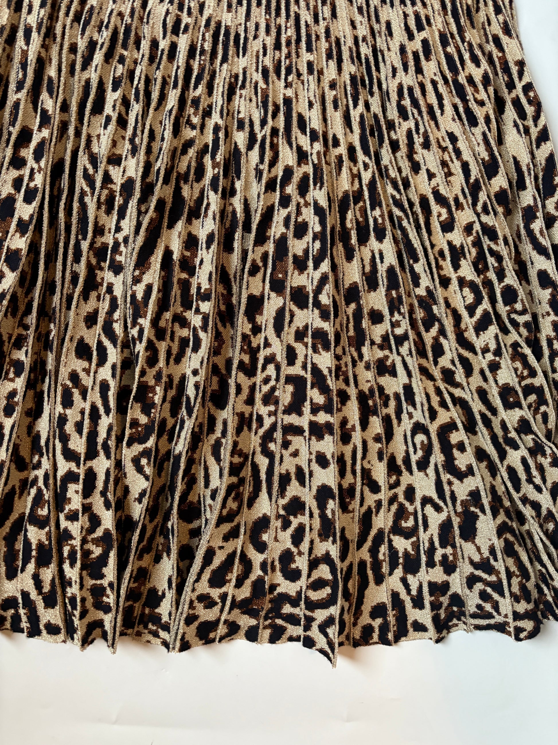 Baum und Pferdgarten metallic leopard print pleated midi skirt with stretch contrast waistband. Fully lined.
