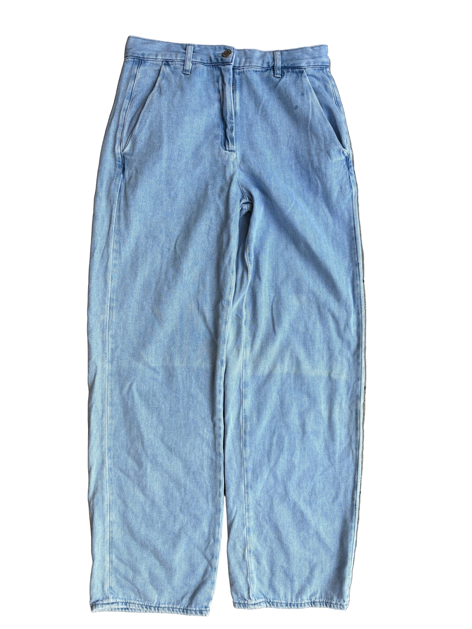 COS Volume Wide-Leg Jeans have an exaggerated silhouette that sits high on the waist and falls into a full, draped leg. Cut from mid-weight organic cotton in a washed light blue.