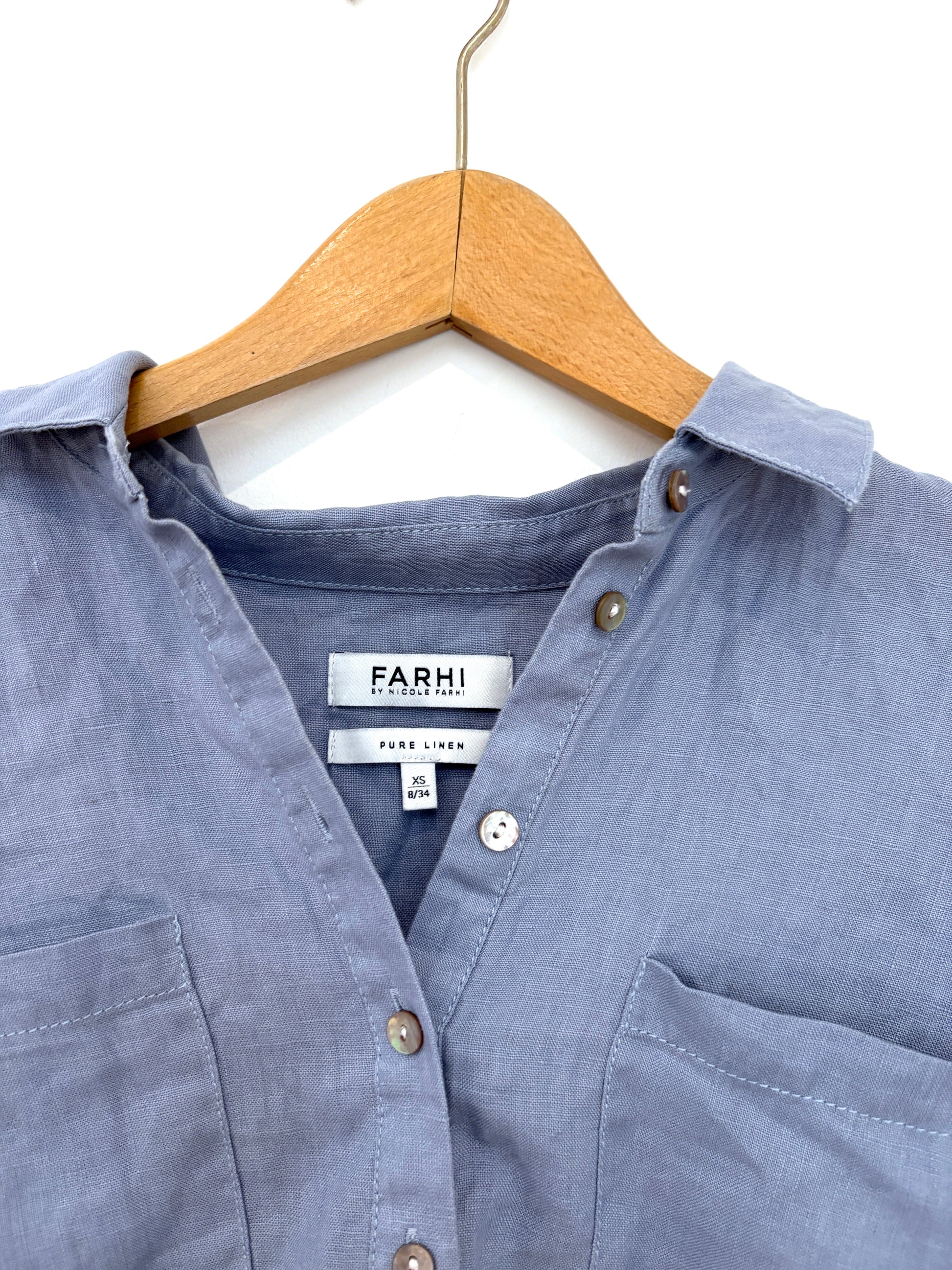 Farhi by Nicole Farhi Blue Linen Shirt XS