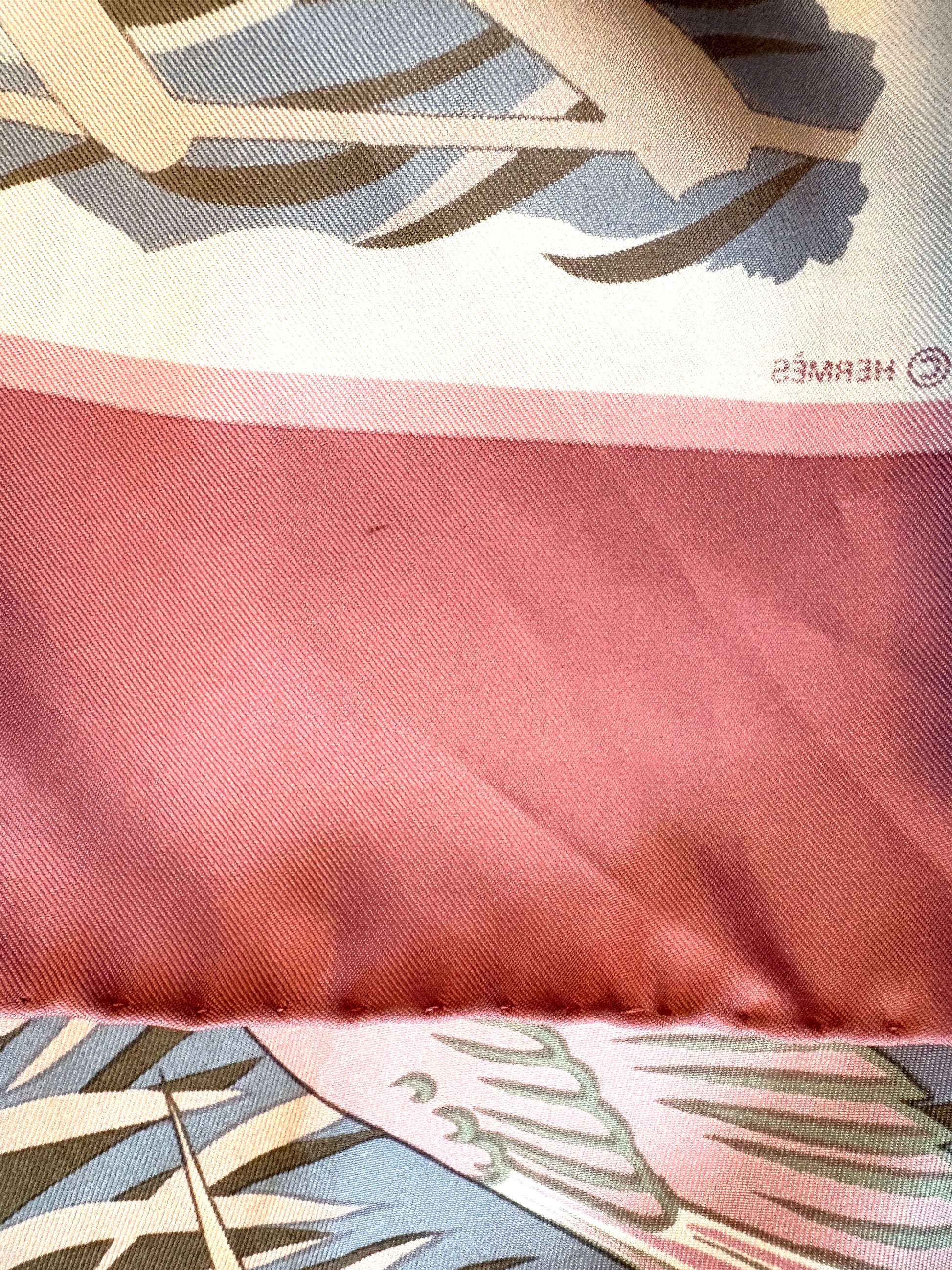 Hermès Silk Twill Foulard Cols Verts Vintage Scarf by Chistiane Vauzelles from the 1981/82 seasonal scarf booklet.