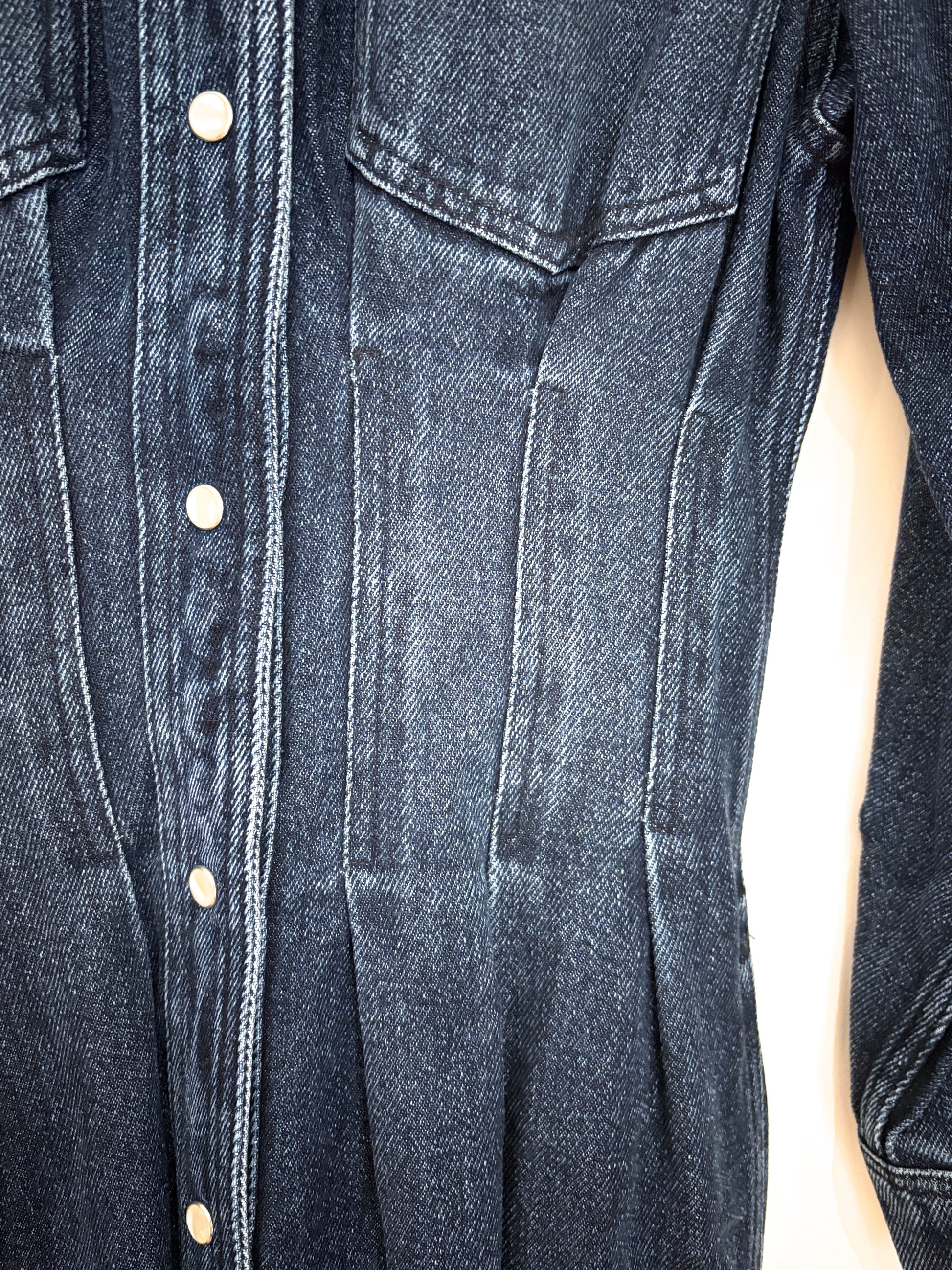 Isabel Marant Etoile midi dress features precisely placed darts at the waist that create a cinched-in silhouette. The denim design comes with pockets at the chest and a full-length button placket.