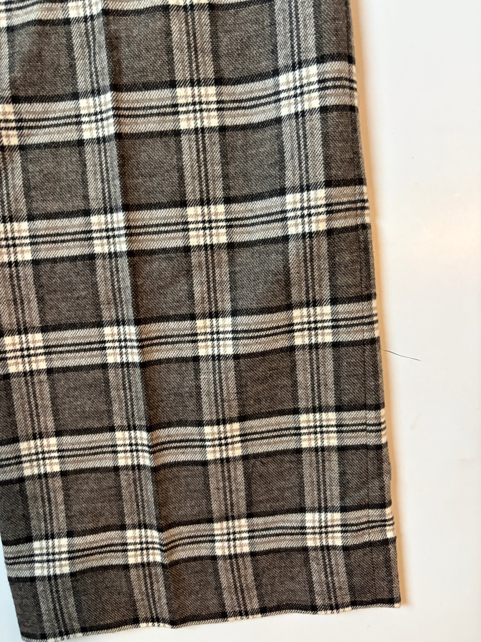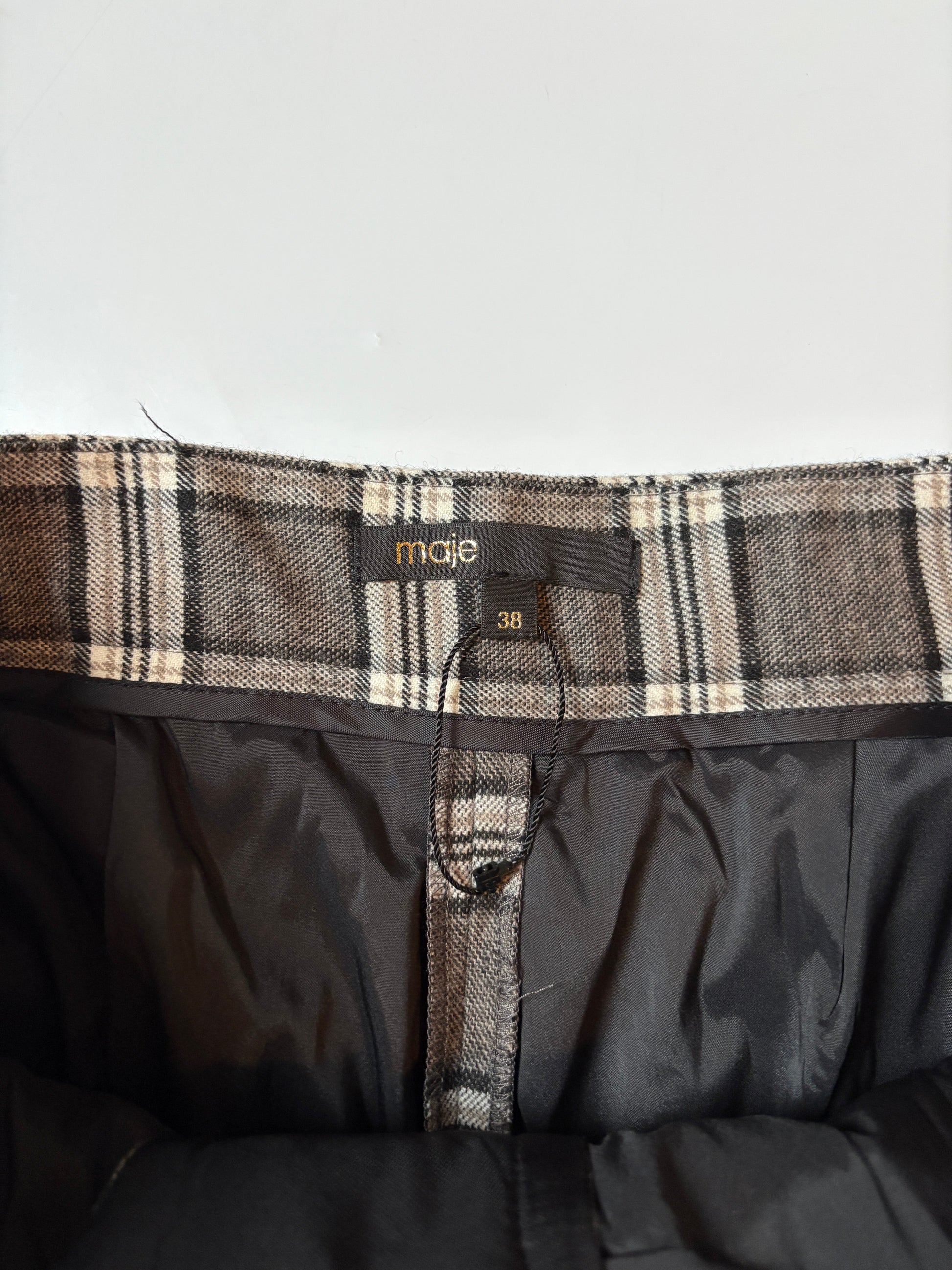 Maje check straight leg trousers in grey and white made from wool blend fabric. Ankle length. Mid rise.