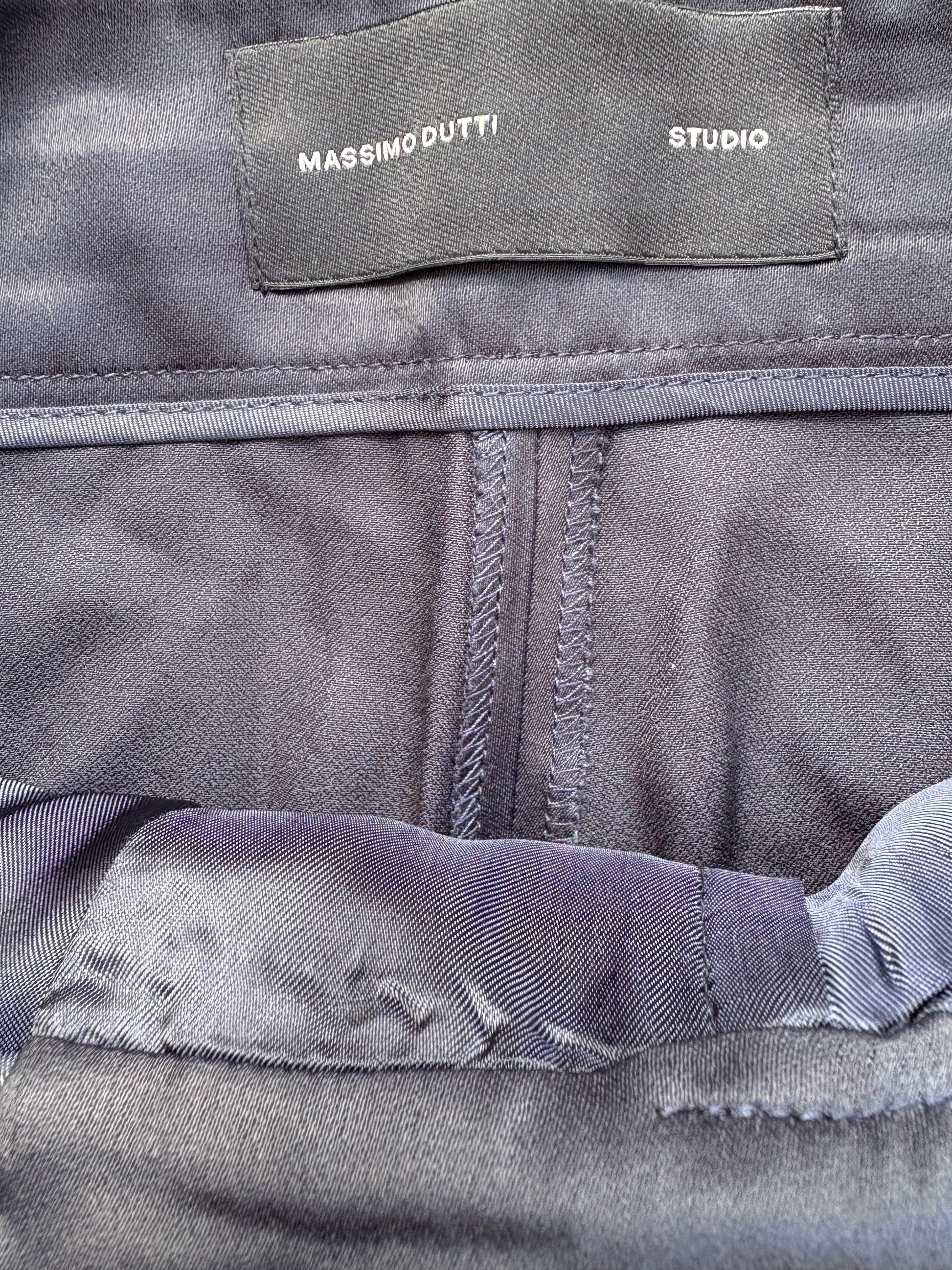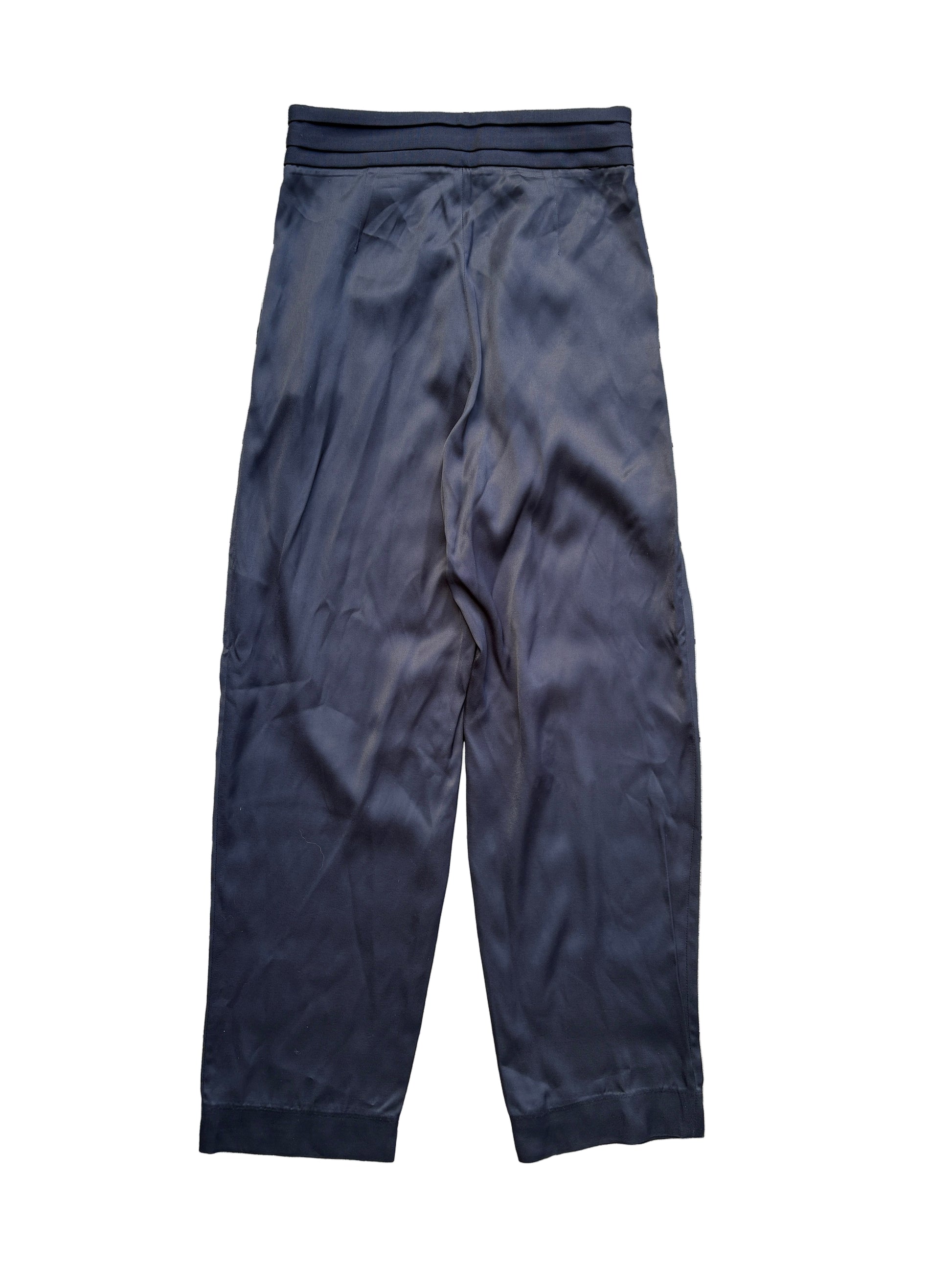 Massimo Dutti navy silky trousers with contrast pleat waist.