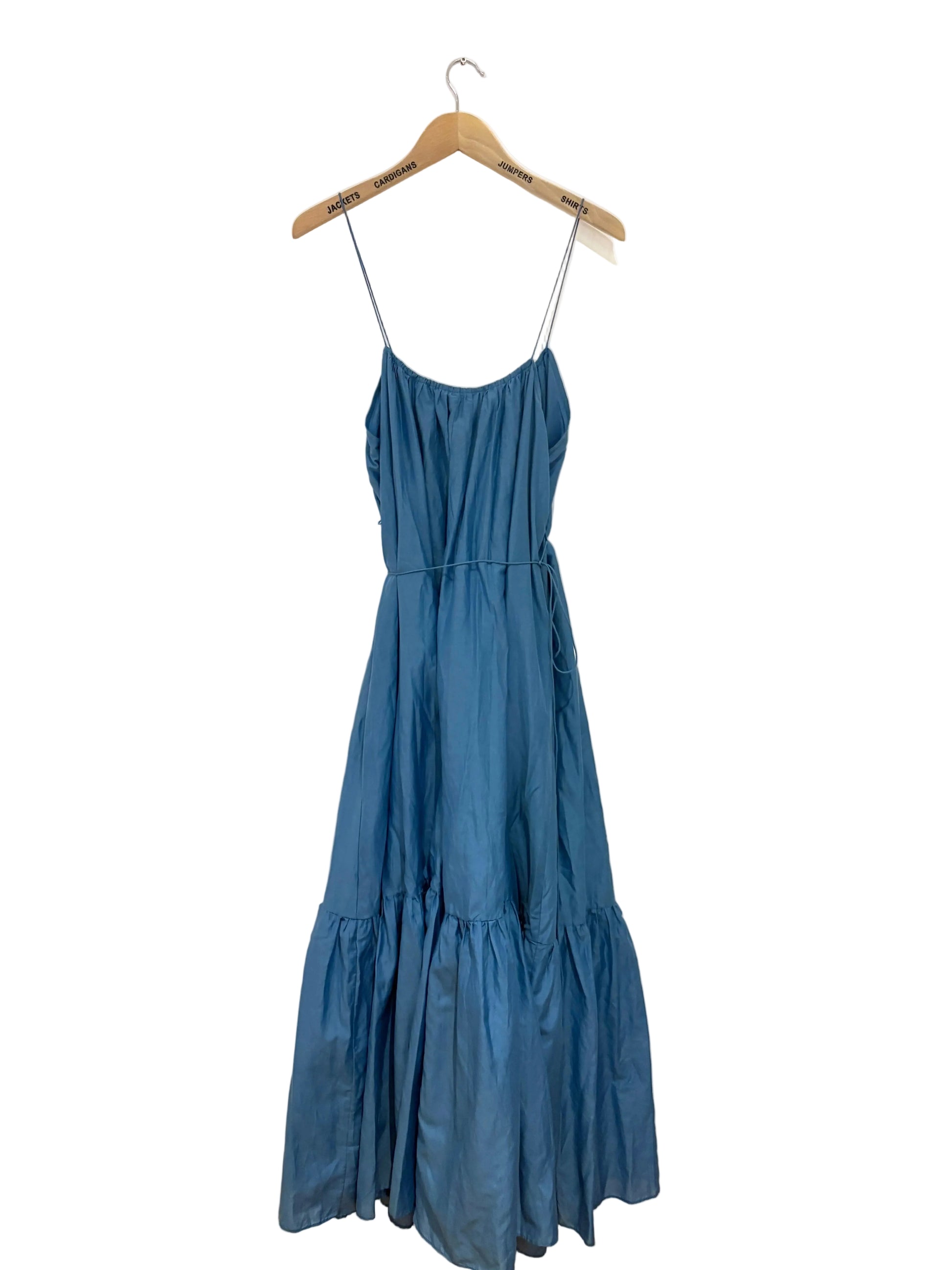 Matteau blue maxi dress, made in Australia from organic cotton blended with a touch of silk and suspends from slender straps.