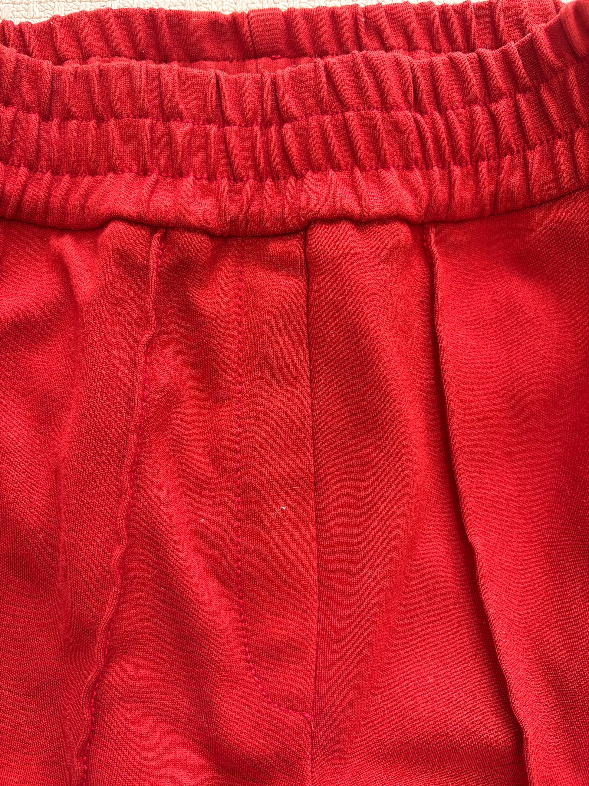 Me+Em red joggers with stretch waistband and stripes down the side.