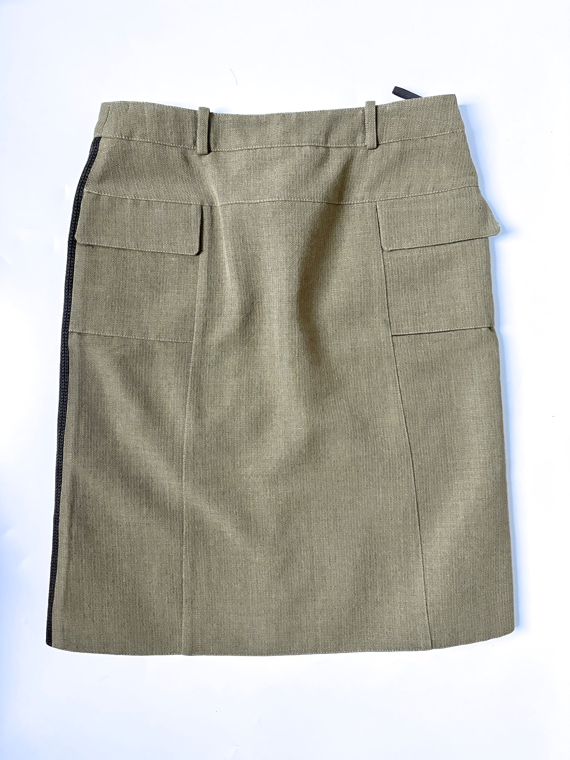 Miu Miu wool blend khaki pencil skirt with ribbed sides.