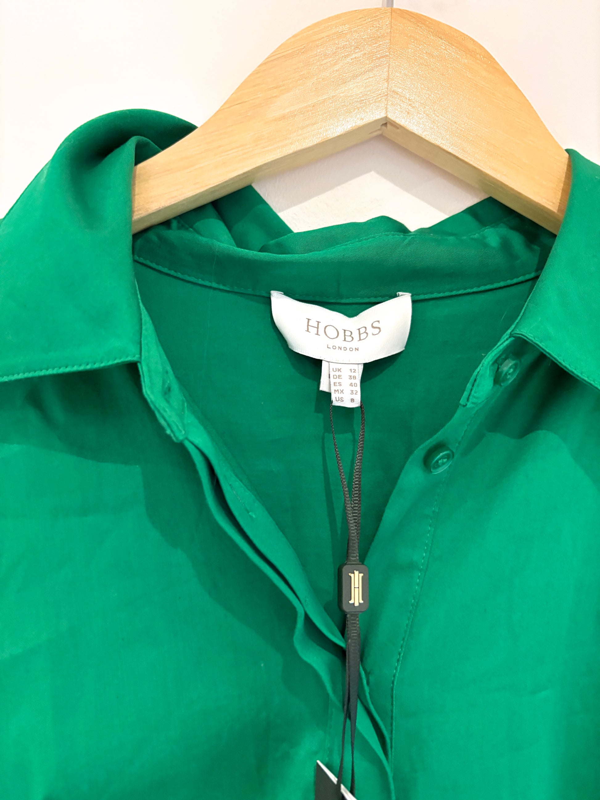 Hobbs Brigitta shirt dress made from cotton sateen fabric and falls just below the knee. Comes with removable belt and pockets.