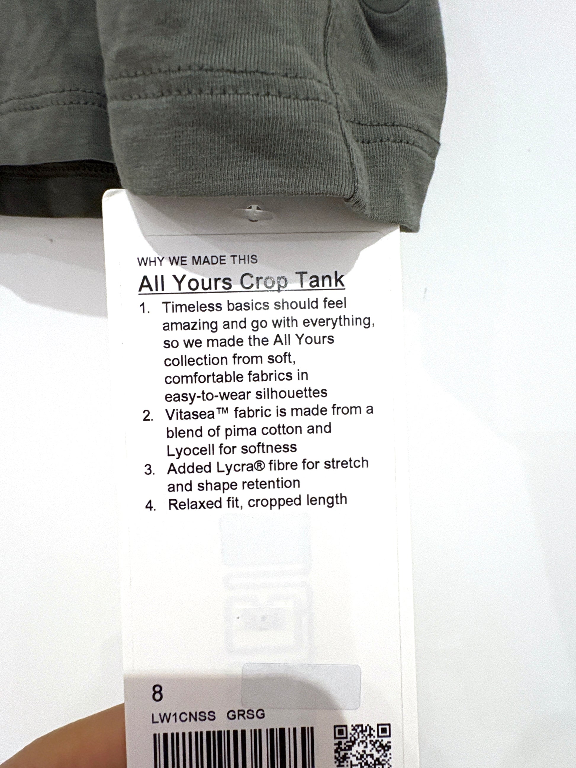 New With Tags Lululemon Khaki Crop Tank UK 12