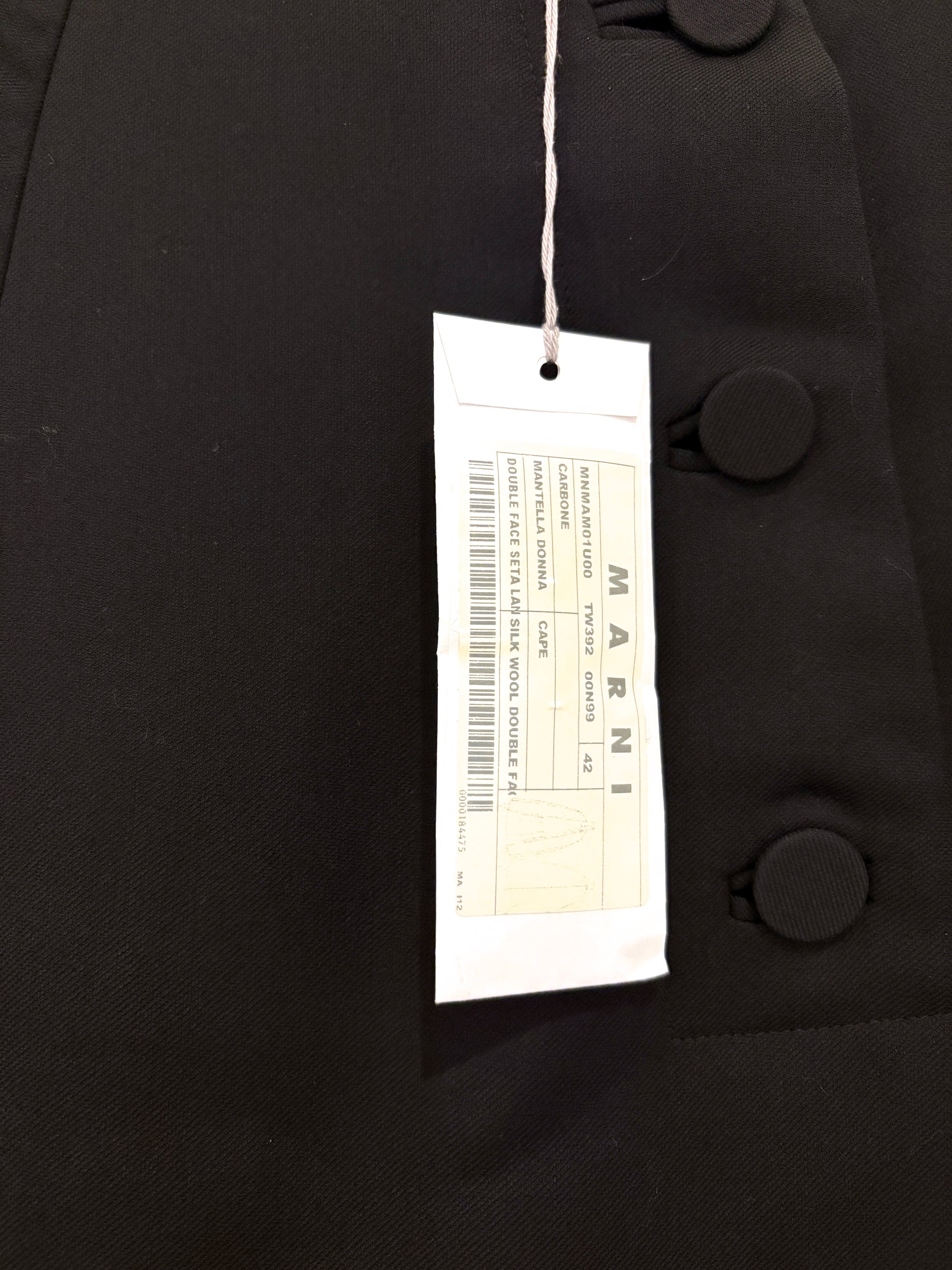 Marni black silk and wool double faced cape coat.