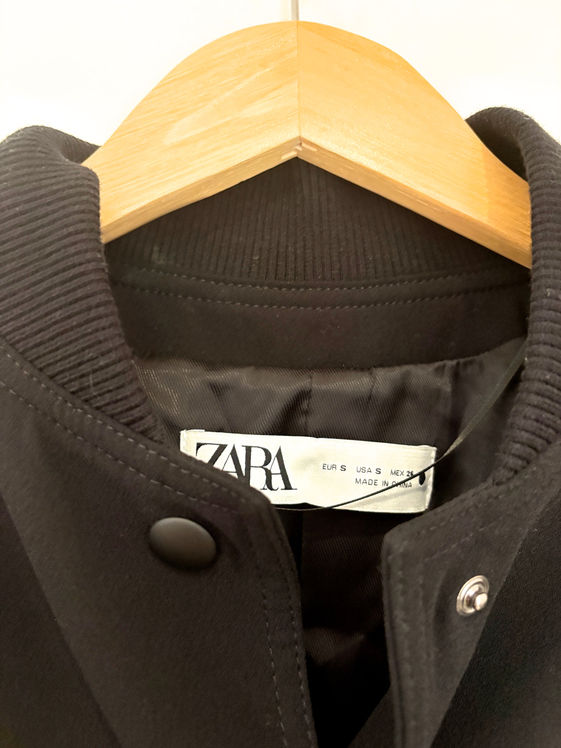 Zara crop bomber jacket with shoulder pads and snap button fastening.