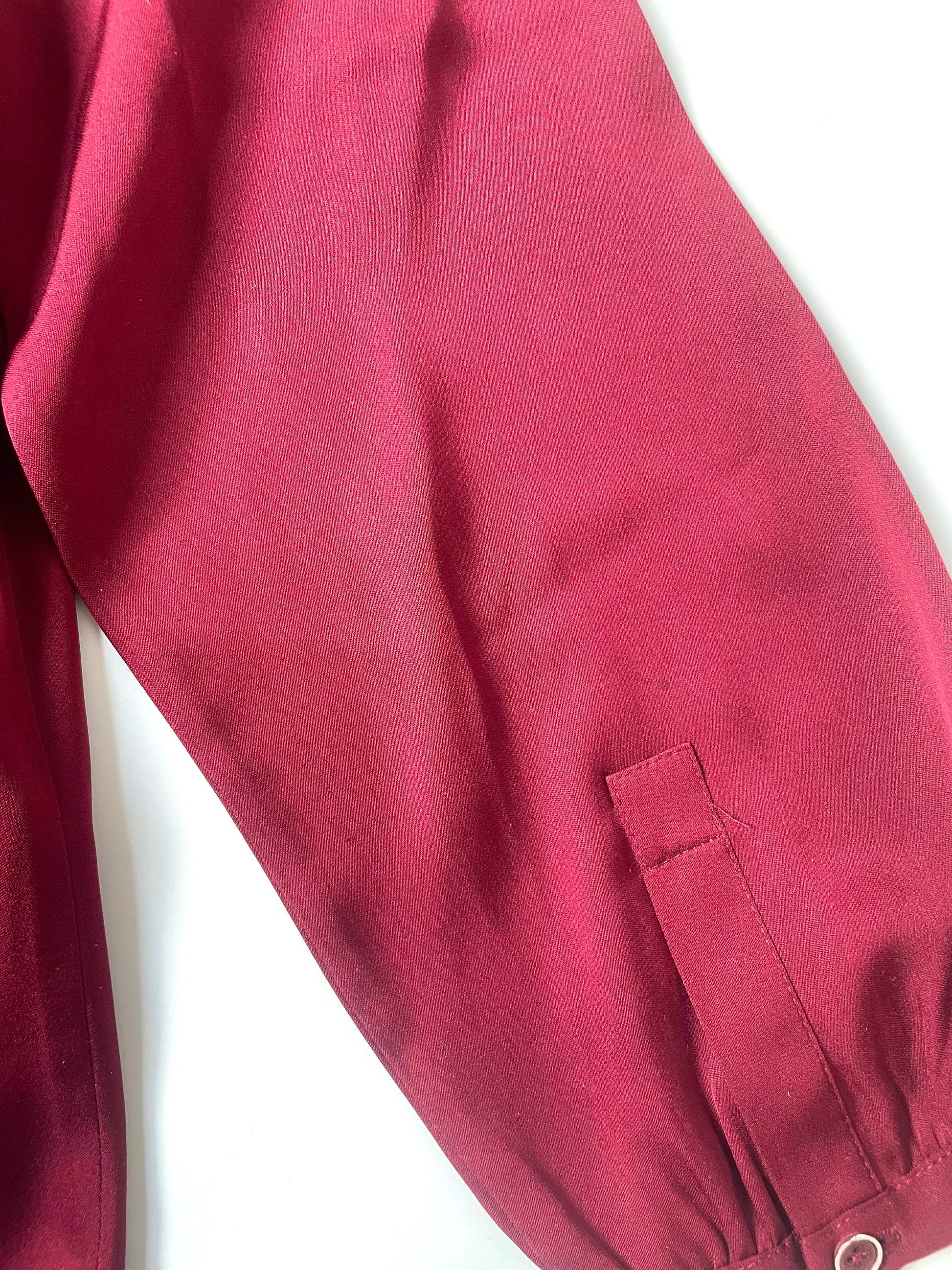 Quince burgundy red oversized silk shirt with pleat detailing at the back.