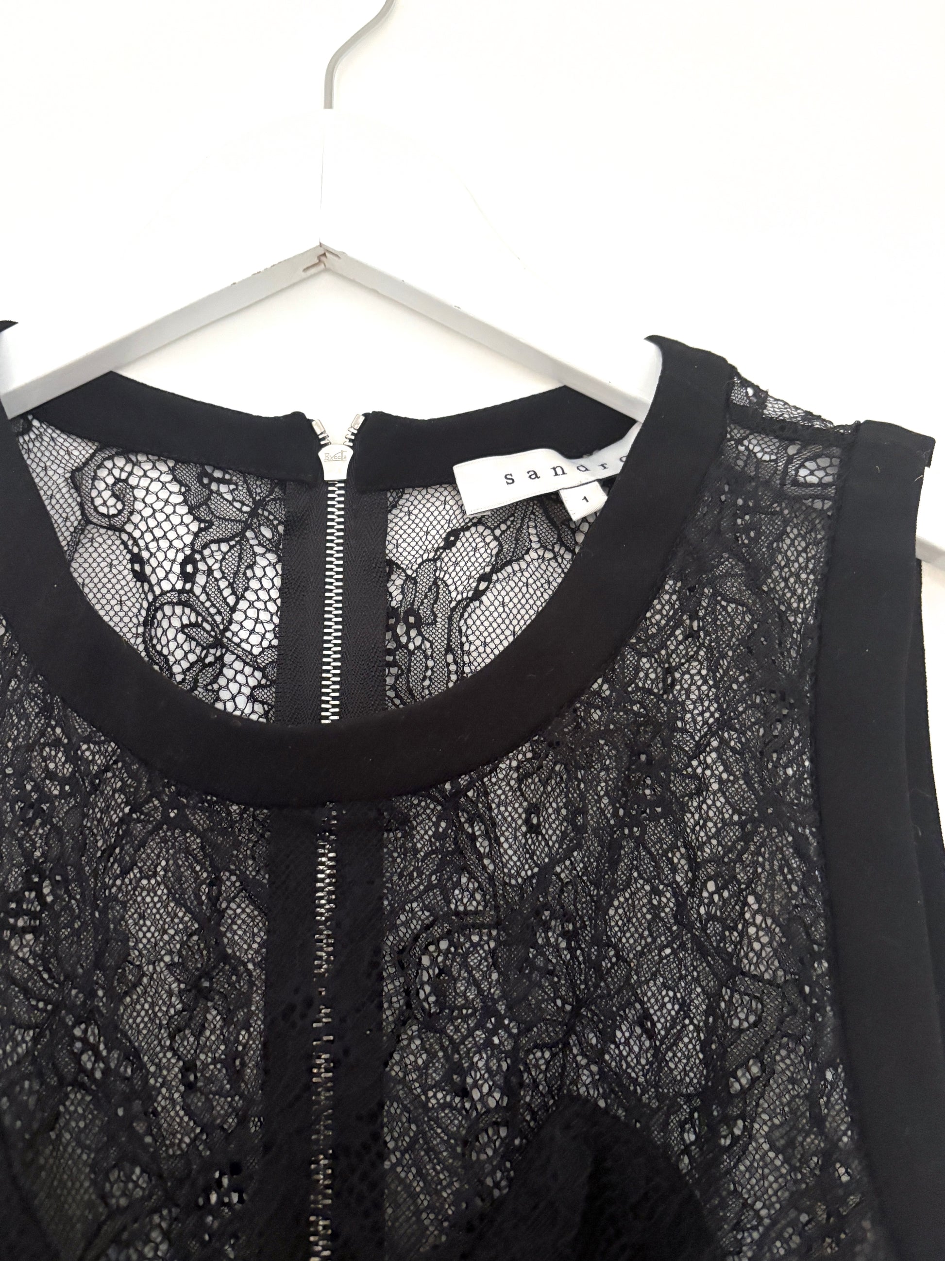 Sandro black lace peplum blouse with zip up fastening at the back.