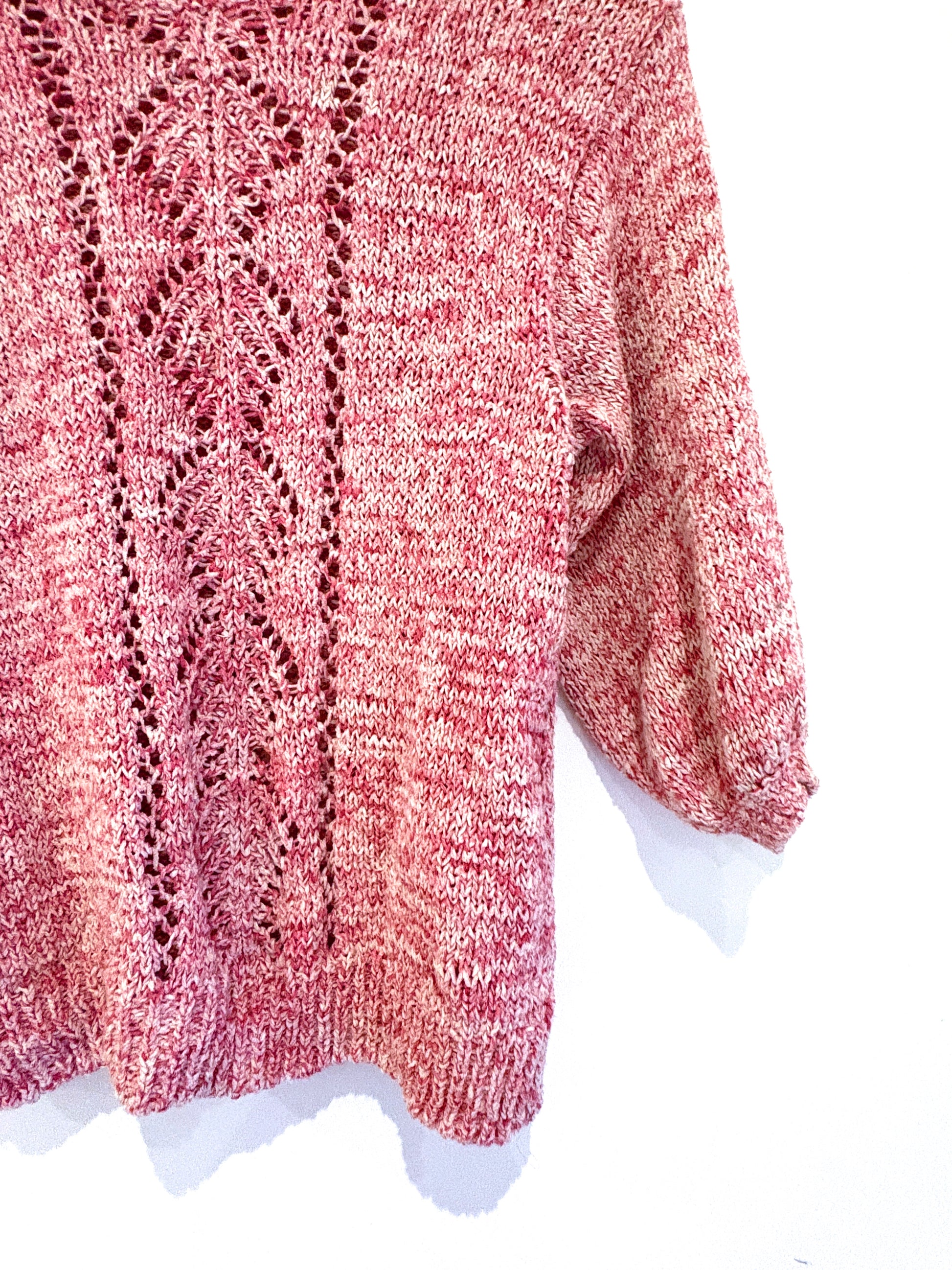 Sézane Rosita pink melange knitted jumper with 3/4 sleeves and elasticated cuffs.