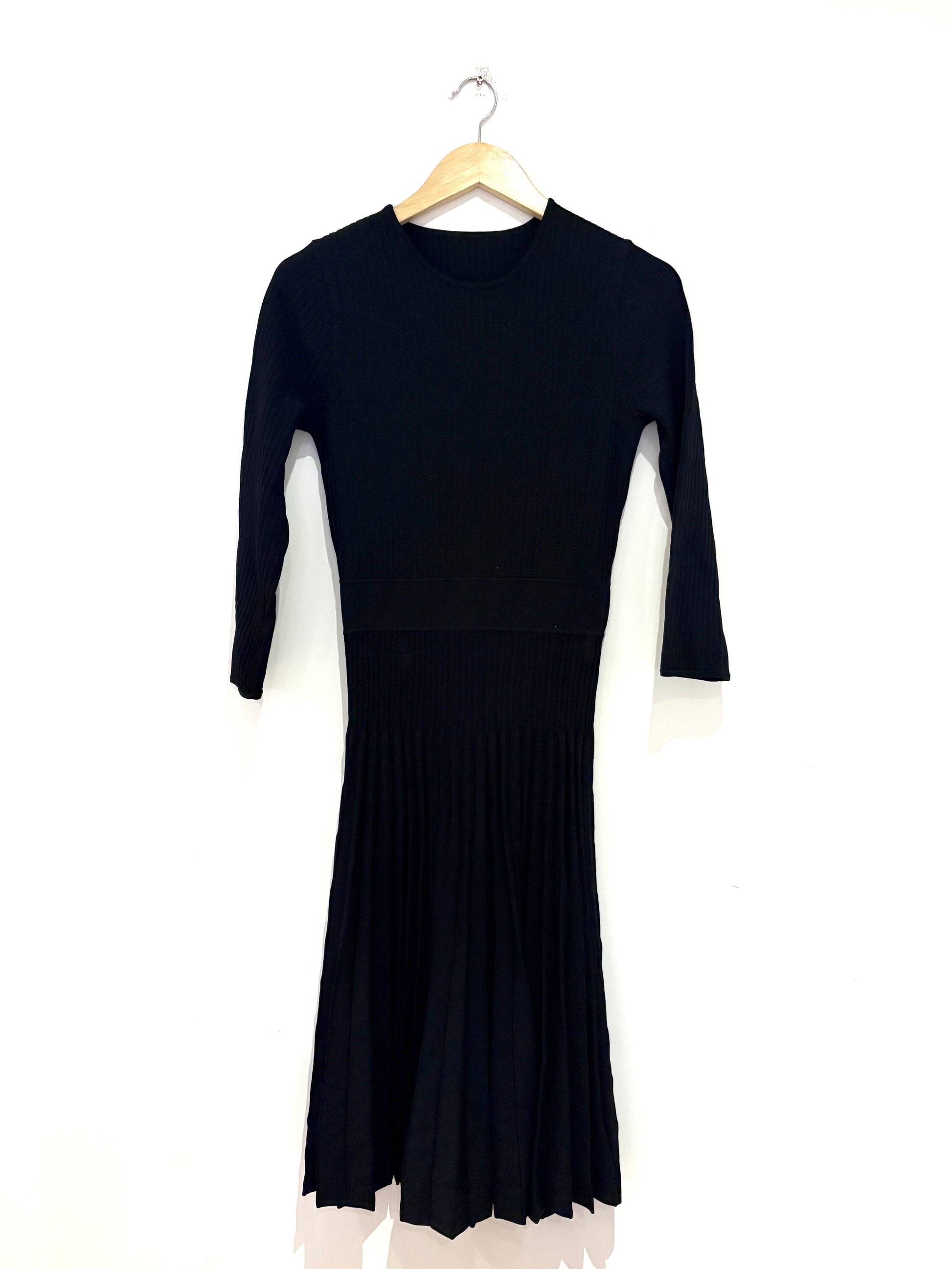 The Fold viscose-knit swing silhouette dress with a pleat full circle skirt, long sleeves and a flattering round neck.