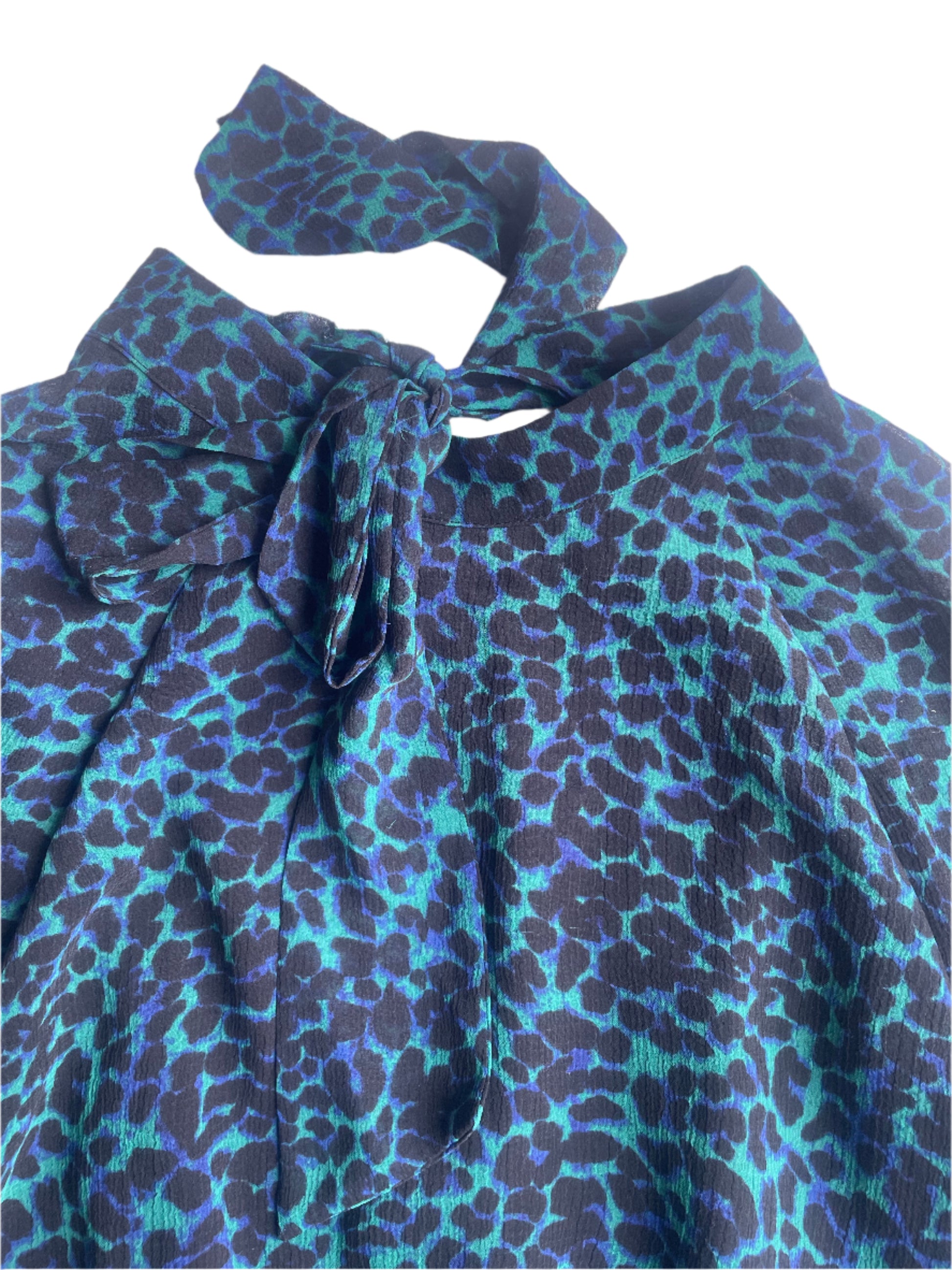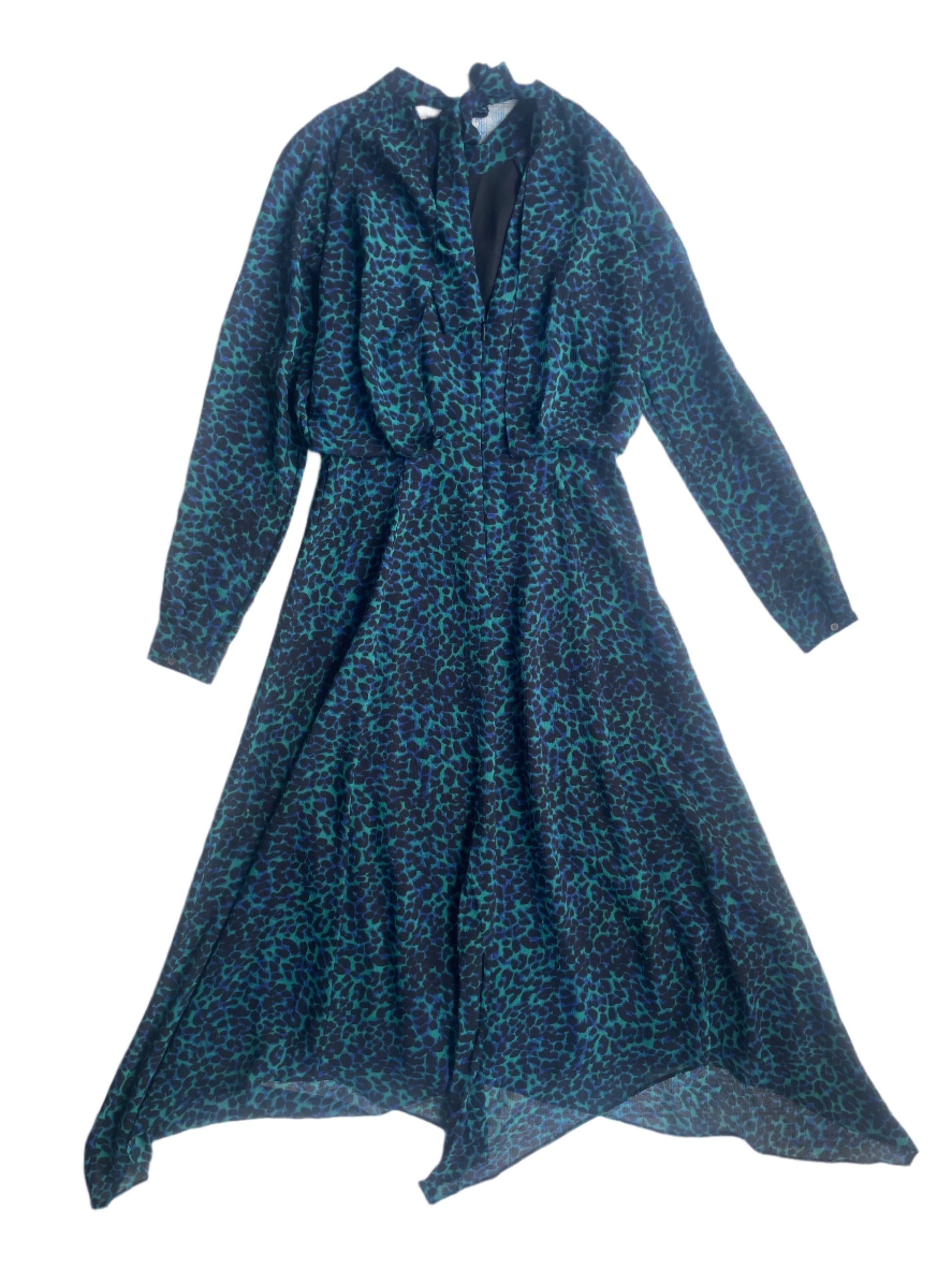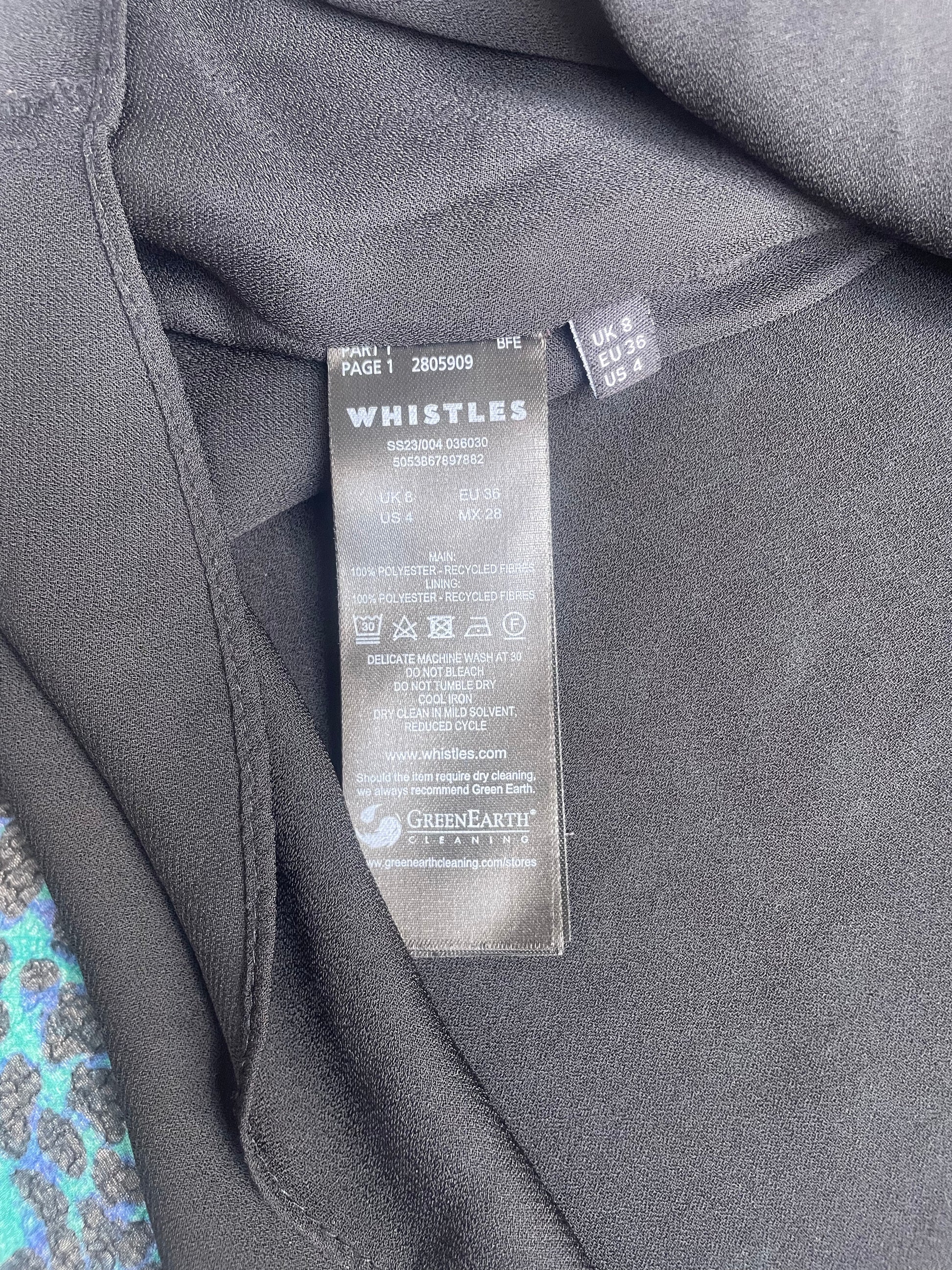 Whistles 'Carlotta' dress cut from a responsible polyester in a blue shade, designed with a close-fitting bodice and a midi-length flared bottom.